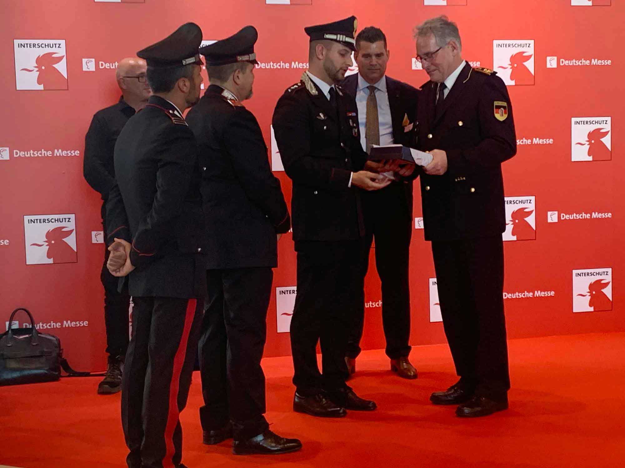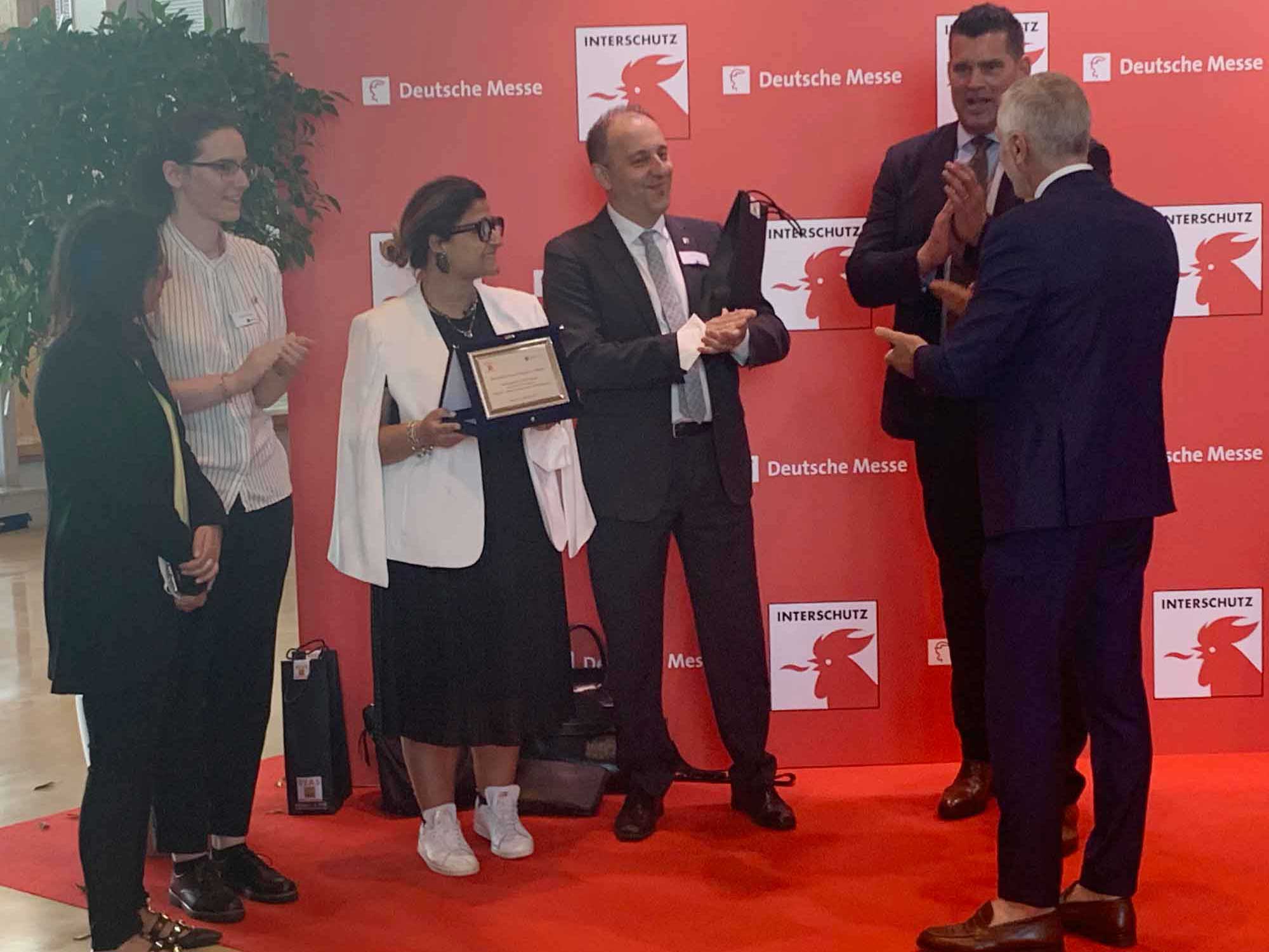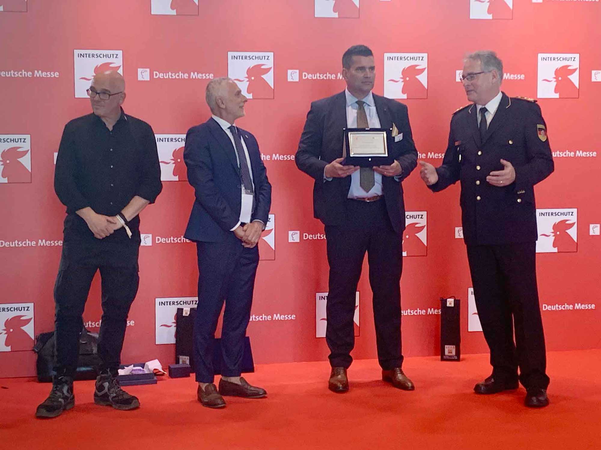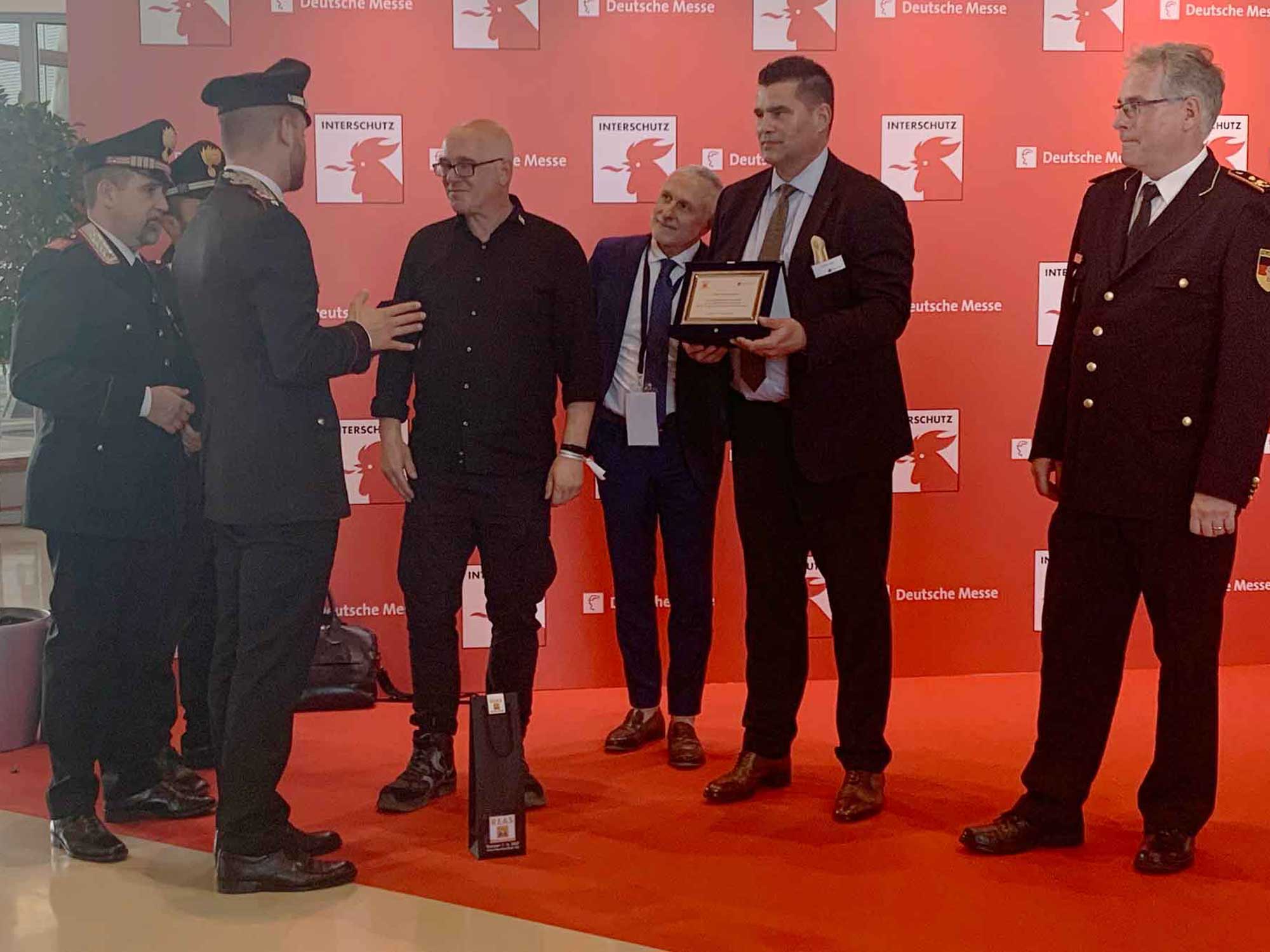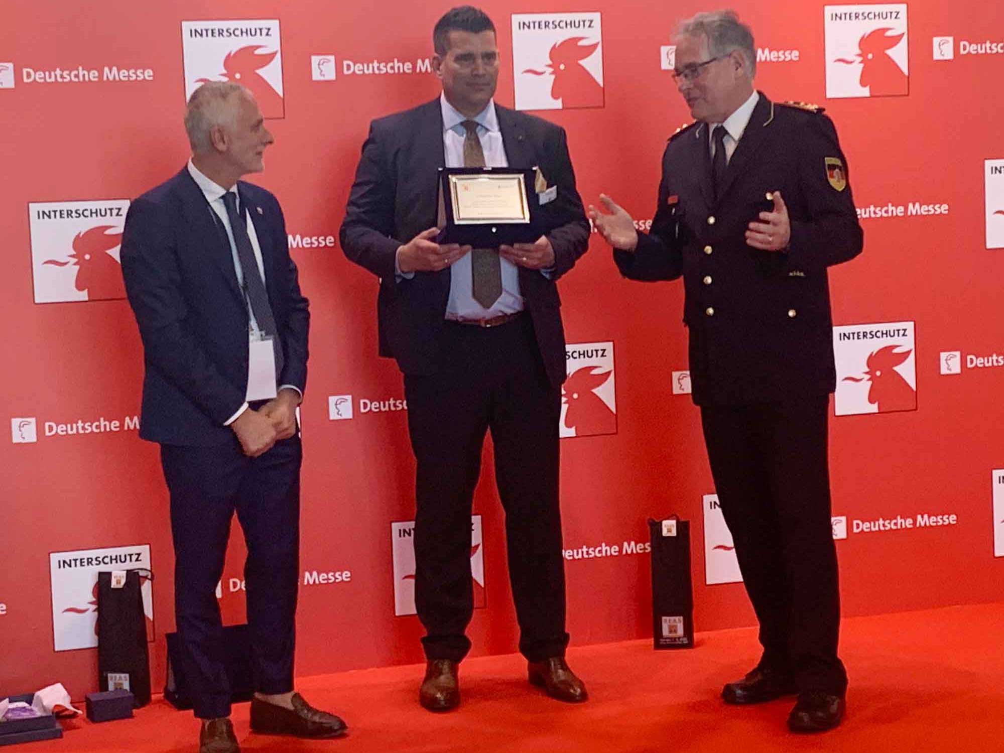 I riconoscimenti sono andati a Dirk Aschenbrenner, presidente dell’Associazione tedesca della protezione antincendio vfdb, e Karl-Heinz Banse, presidente dell’associazione tedesca dei vigili del fuoco DFV, associazioni che annoverano oltre 1.300.000 volontari, nonché Heinz-Peter Brandenberg e Matthias Ludwig, esponenti di spicco del vfdb, Bernd Heinold, responsabile INTERSCHUTZ di Deutsche Messe, Andreas Züge, direttore generale di Hannover Fairs International GmbH, sede italiana di Deutsche Messe e, in forma collettiva, a tutto lo staff di Hannover Fairs International GmbH di Milano che, da dieci anni, dà un contributo essenziale al successo ed all’internazionalizzazione di REAS.