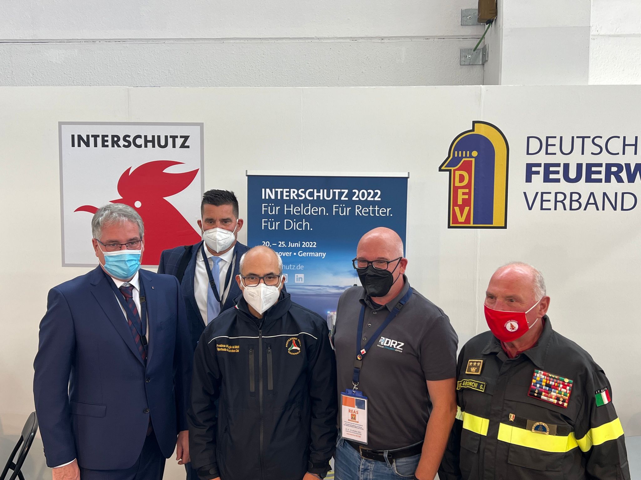In occasione dell’inaugurazione di REAS, il presidente vfdb Dirk Aschenbrenner e il presidente DFV Karl-Heinz Banse hanno accolto il Capo Dipartimento della Protezione civile Fabrizio Curcio allo stand di INTERSCHUTZ, invitandolo ufficialmente alla prossima edizione della fiera quinquennale leader al mondo per il settore safety che si terrà ad Hannover dal 20 al 25 giugno 2022. REAS e le aziende italiane saranno protagonisti in occasione della Giornata Paese Partner Italia, con una serie di iniziative espressamente dedicate al nostro Paese. La sinergia tra Centro Fiera di Montichiari e Deutsche Messe AG ha creato un canale permanente di dialogo e collaborazione tra Italia e Germania e ha contribuito ad accrescere l’appeal internazionale del marchio REAS.